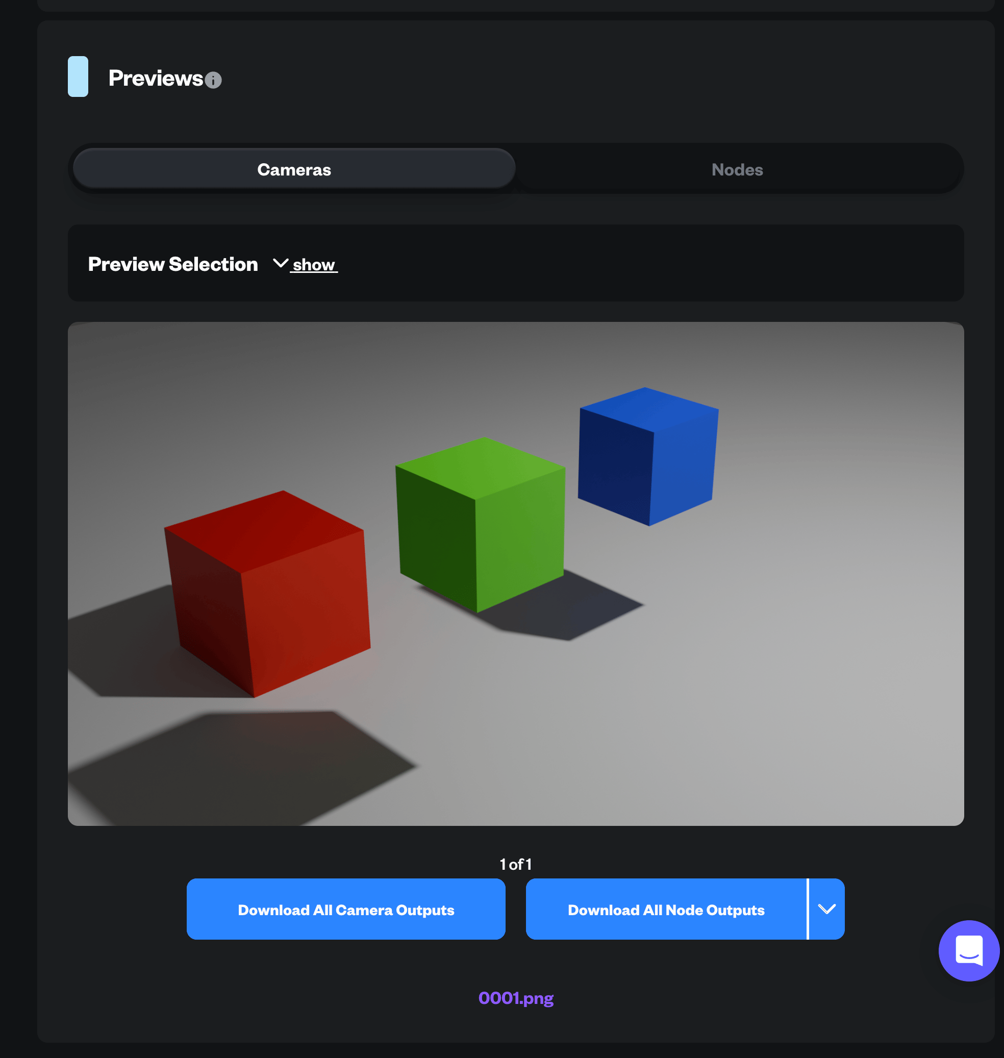 If we detect that your Blender scene is using composite nodes, we provide a separate tab (shown below)and buttons for downloading those outputs separately from your main render.